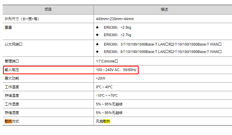 以太网端口 | l ER6300:3个10/100/1000Base-T LAN口和2个10/100/1000Base-T WAN口 l ER8300:8个10/100/1000Base-T LAN口和2个10/100/1000Base-T WAN口 |