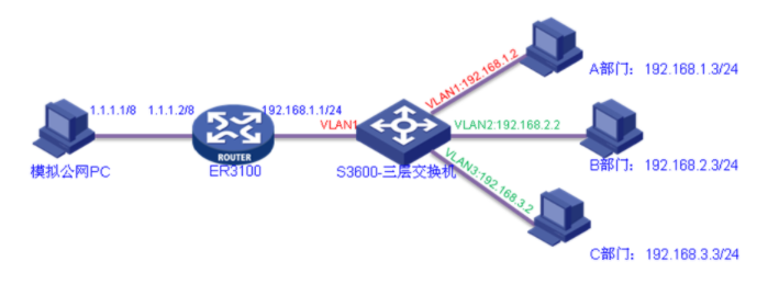 如果网关是在S3600上,S3600与路由器需要配置三层互联,S3600需配置默认路由指向到路由器,路由器上需要配置静态路由回指导S3600上的各VLAN IP地址段。