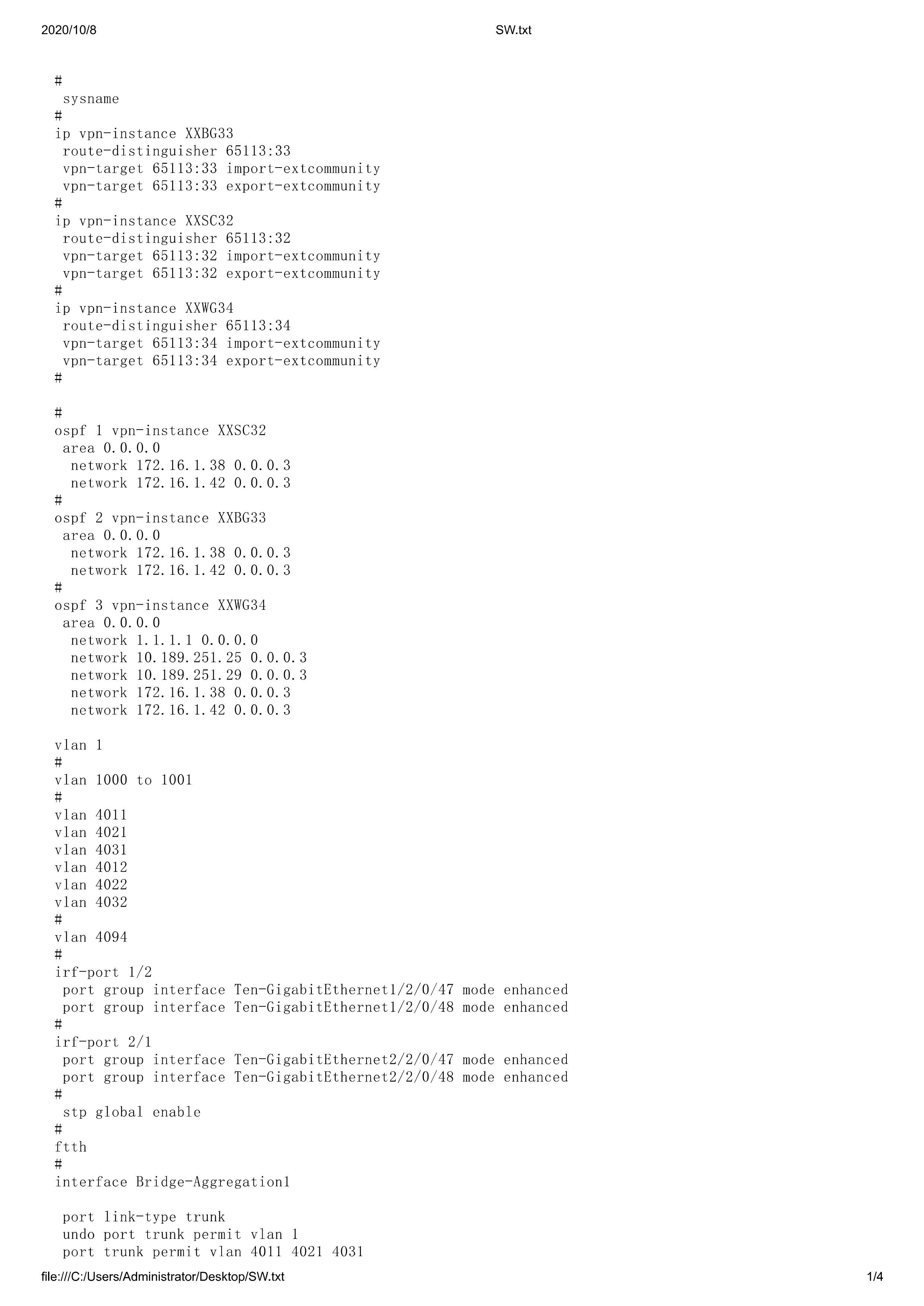 首先需要有XXBG33这个VPN实例,然后在int vlan虚接口下将XXBG33的VPN实例绑定进去,参考命令如下: