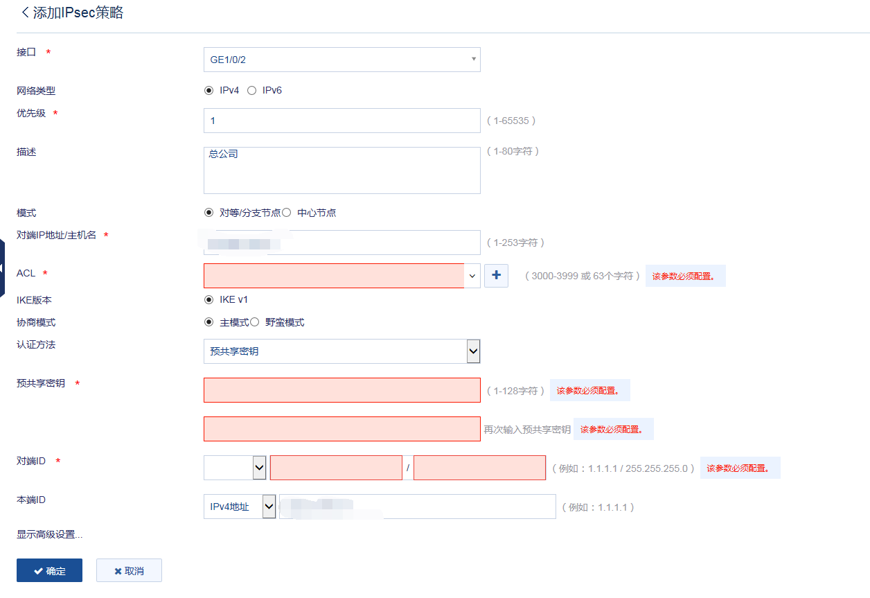 2、预共享密钥是指两端要进行IPSEC VPN互通的密钥,密钥一致了才能为后续的互通提供基础。