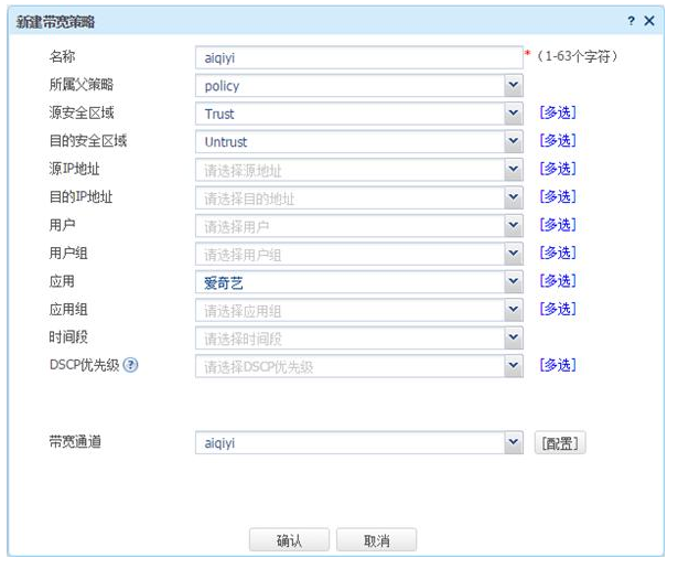 # 按照同样的步骤,添加带宽通道aiqiyi,配置如下。
