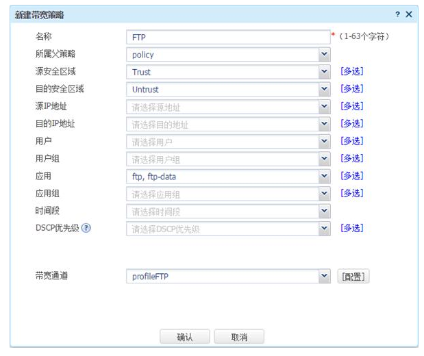 # 按照同样的步骤,新建带宽策略FTP,配置如下。