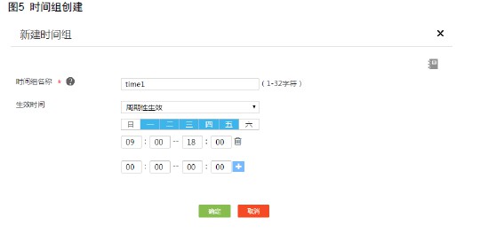 # 选择“上网行为管理 > 时间组”,单击<添加>按钮,进入时间组创建界面,参数配置如下图所示