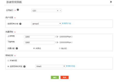带宽管理功能用于对流量进行限速,用户可基于用户组和时间段等限制条件对流量进行精细控制。