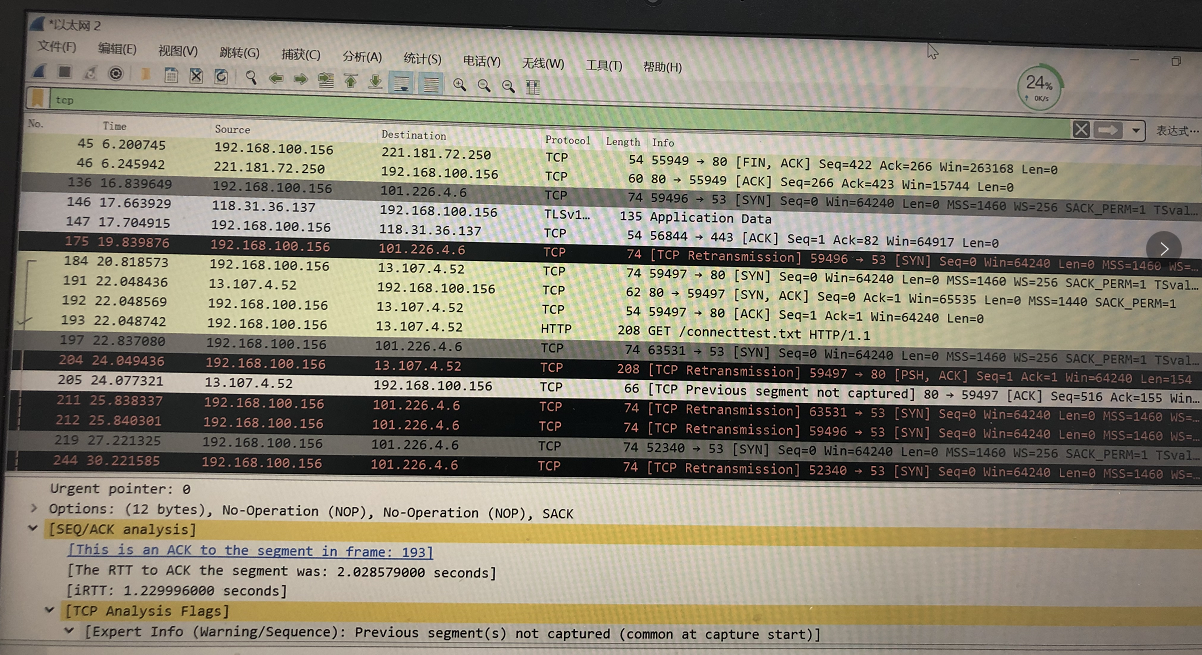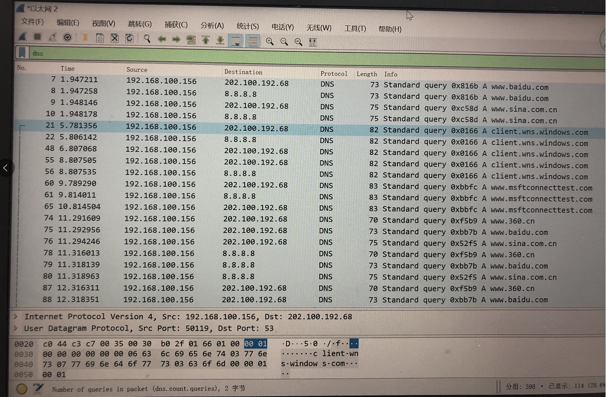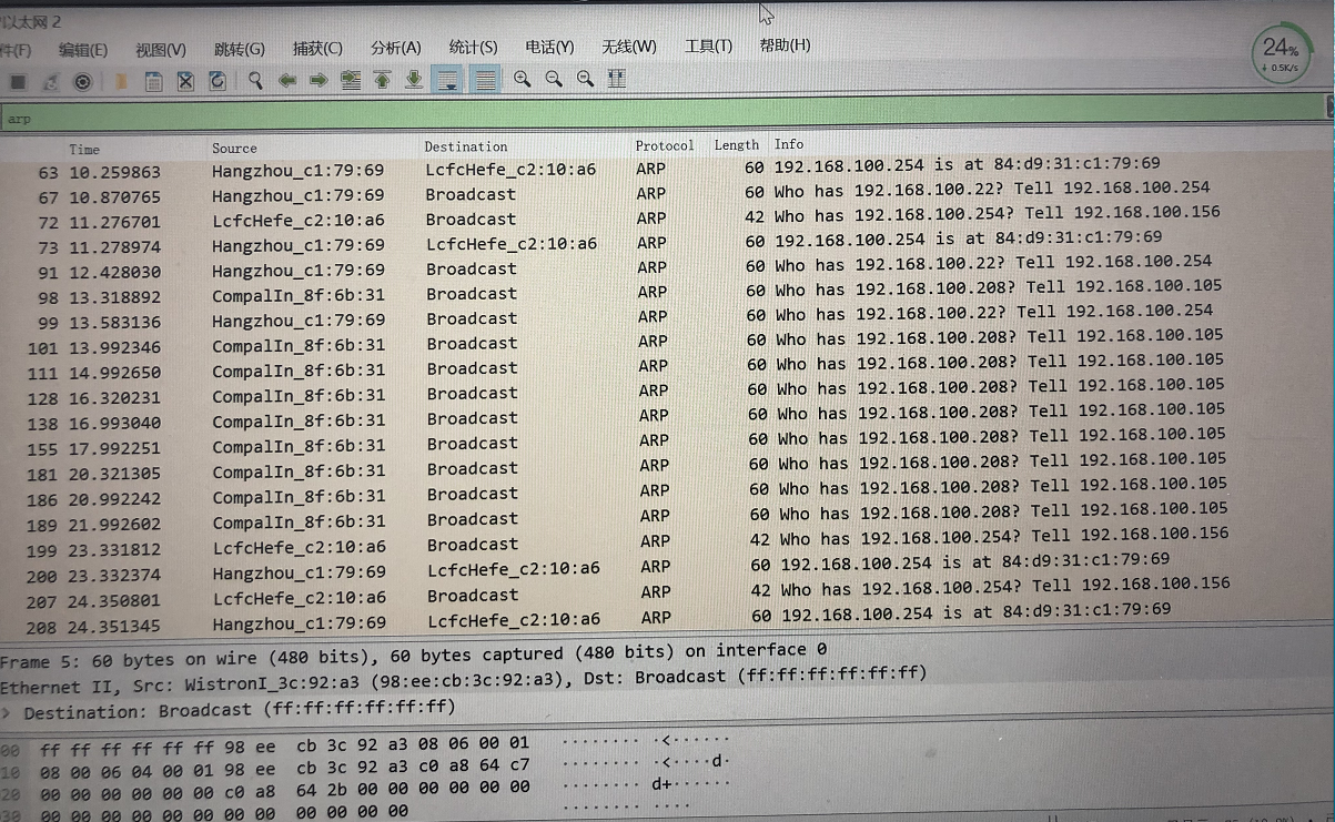 最近几天局域网里有些电脑间歇性出现dns解析故障,时好时坏,但微信和QQ都时正常登录状态并没有掉线,不知道大家有没有遇到这种情况,一直查不出原因好不苦恼。出故障时抓包图:arp: