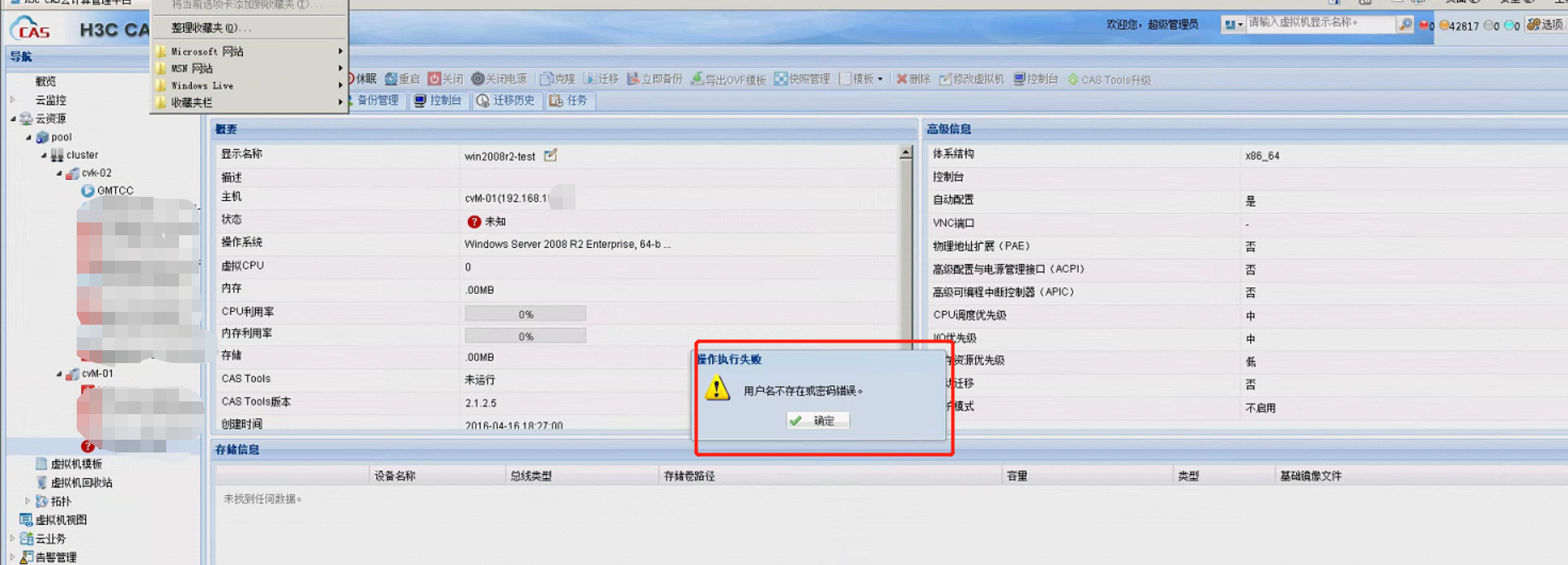 如图所示,在前台进行修改密码时报错;后台没办法进去修改,但有时候能通过cvk2进去,有没有什么办法进行修复或修改密码?