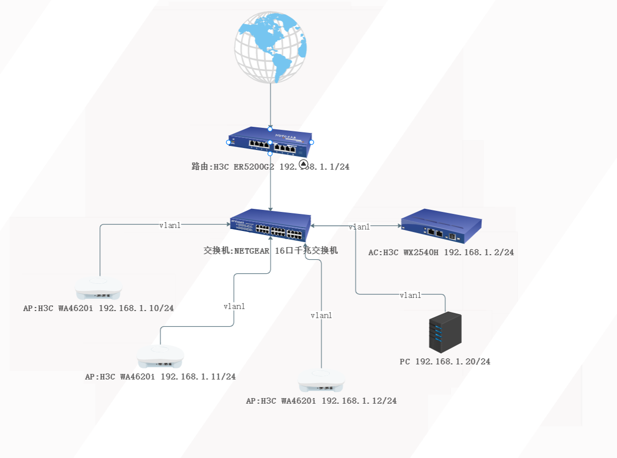 本人网络小白,最近入了3台WA4620i以及一台WX2540H,家用,看网上教程AC很多都选择比较复杂的部署方式,我用了最简单的方案: