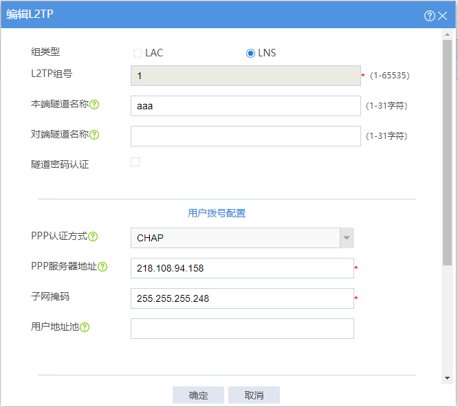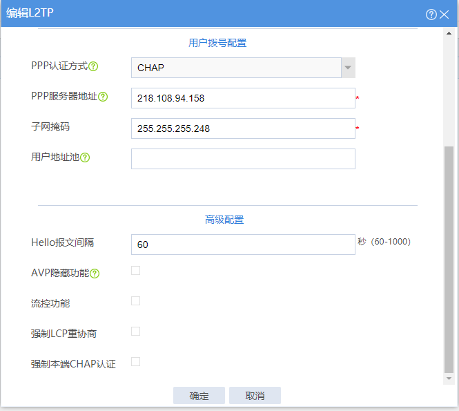 如图,设置了 L2TP,PPP服务器地址和掩码是随便写的,在对象里面添加了一个用户,用华为VPN客户端登录时,显示“链路层对端主动断开”。请教专家问题出在哪里?