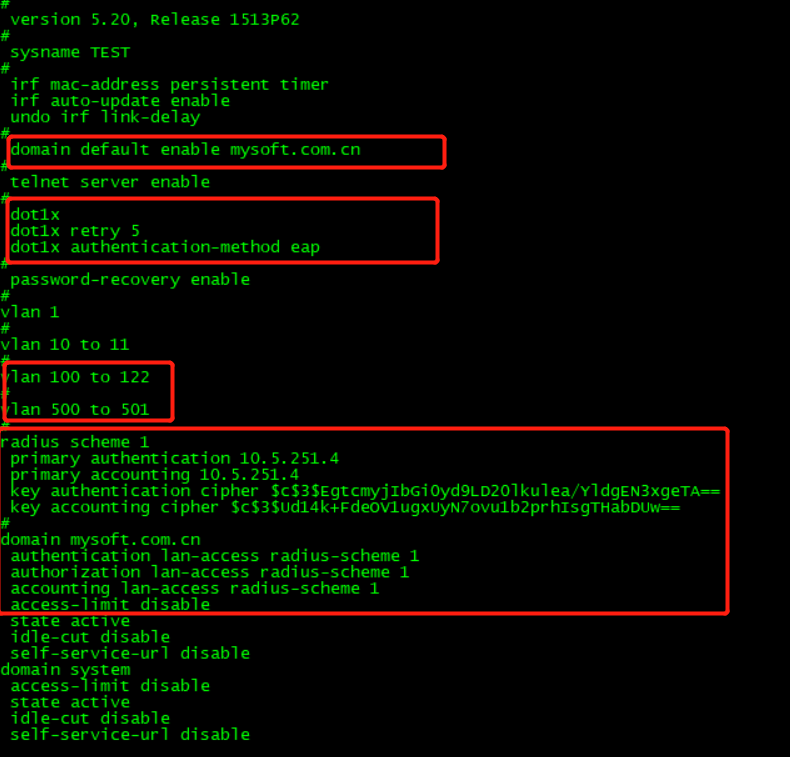 vlan100 为认证vlan, vlan 500为逃生vlan,目前认证正常,交换机可以与认证服务器通讯,802.1x认证没有问题;将接口只配置Port default vlan 500 ,电脑可以获取到vlan500的地址,交换机配置了空桶路由是交换机与认证服务无法通讯后,Gi1/0/22口如下配置,电脑无法获取到IP地址