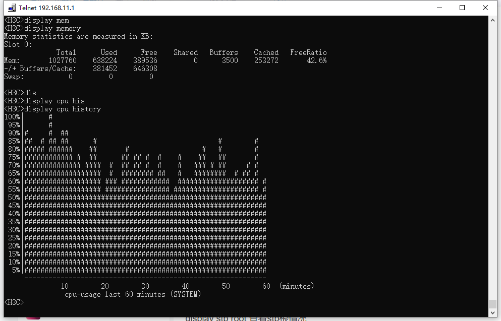 另外也可以使用dis process cpu查看下具体是哪个进程对于CPU的利用率高。