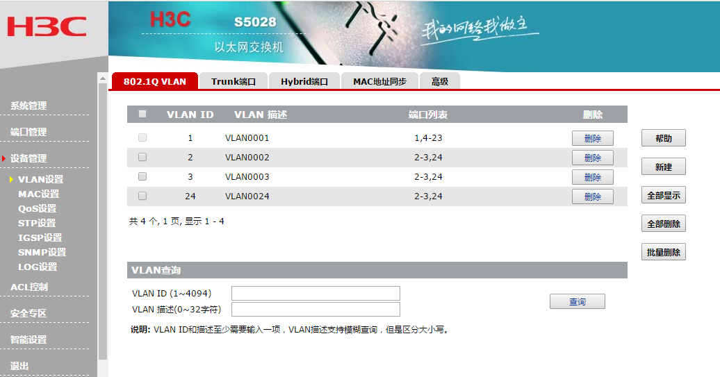 另外,S5028交换机,我目前理解,好像不能给每个VLAN划分子网段,也就不能通过路由器进行跨VLAN通讯。那是不是,就只能限定通过端口HYBRID进行转发了。谢谢大虾解答!