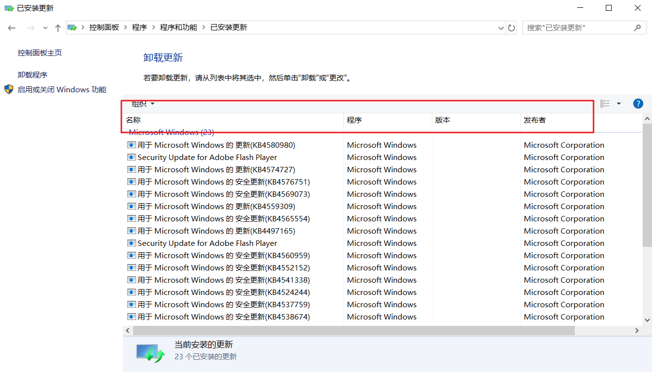 控制面板—>程序——>查看已安装的更新