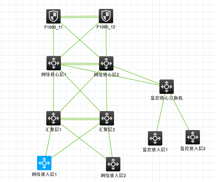 我们公司网络需要重新改造,之前都是单点模式,现在想改成冗余模式,不知道这样架构合不合理,是不是汇聚层、核心层以及防火墙都应该采用堆叠模式,我们需要通过PC来web访问监控的硬盘录像机,不知道监控核心是连接到网络核心交换机还是连接到防火墙。恳请大神给点建议,不胜感激!