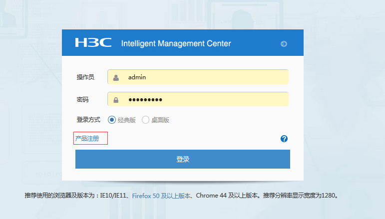 在imc登录页面上选择产品注册获取hostid或者直接在\iMC\client\license目录下获取。
