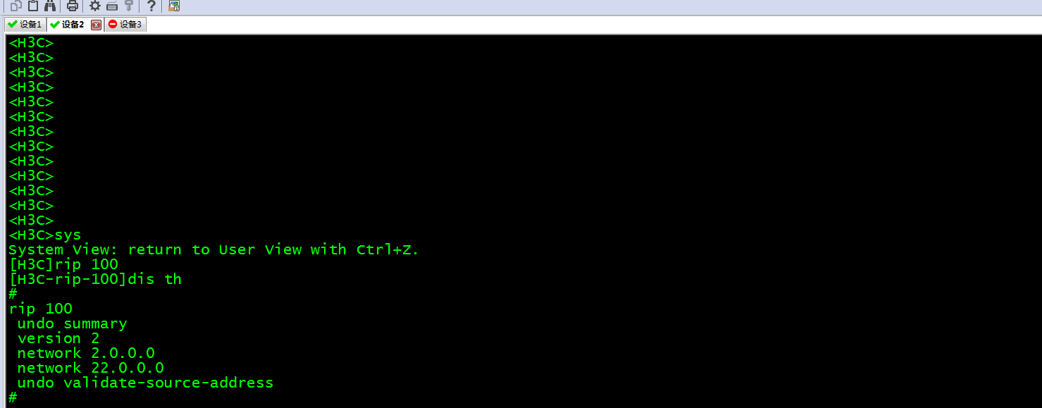 进入RIP视图 | rip [ process-id ] [ vpn-instance vpn-instance-name ] | - |