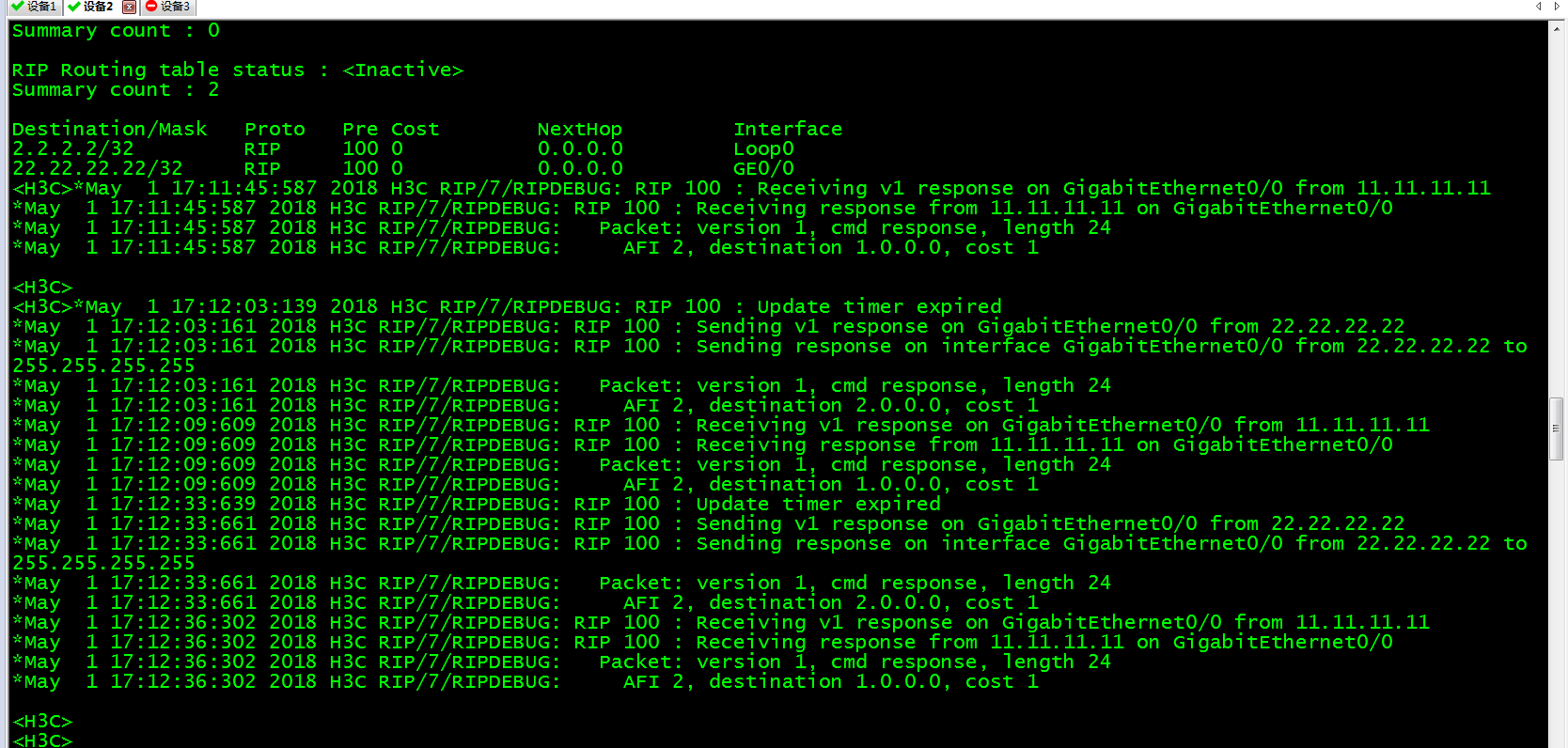 如图所示,路由器的物理接口借用环回口的IP地址,两个物理网段处在不同网段,我在RIP 下敲入不检查更新源的命令,查看路由表仍然没有RIP路由,这是为什么,我打开了DEBUGGING消息,的确收到了对短的resonse消息,为什么不加入路由表呢