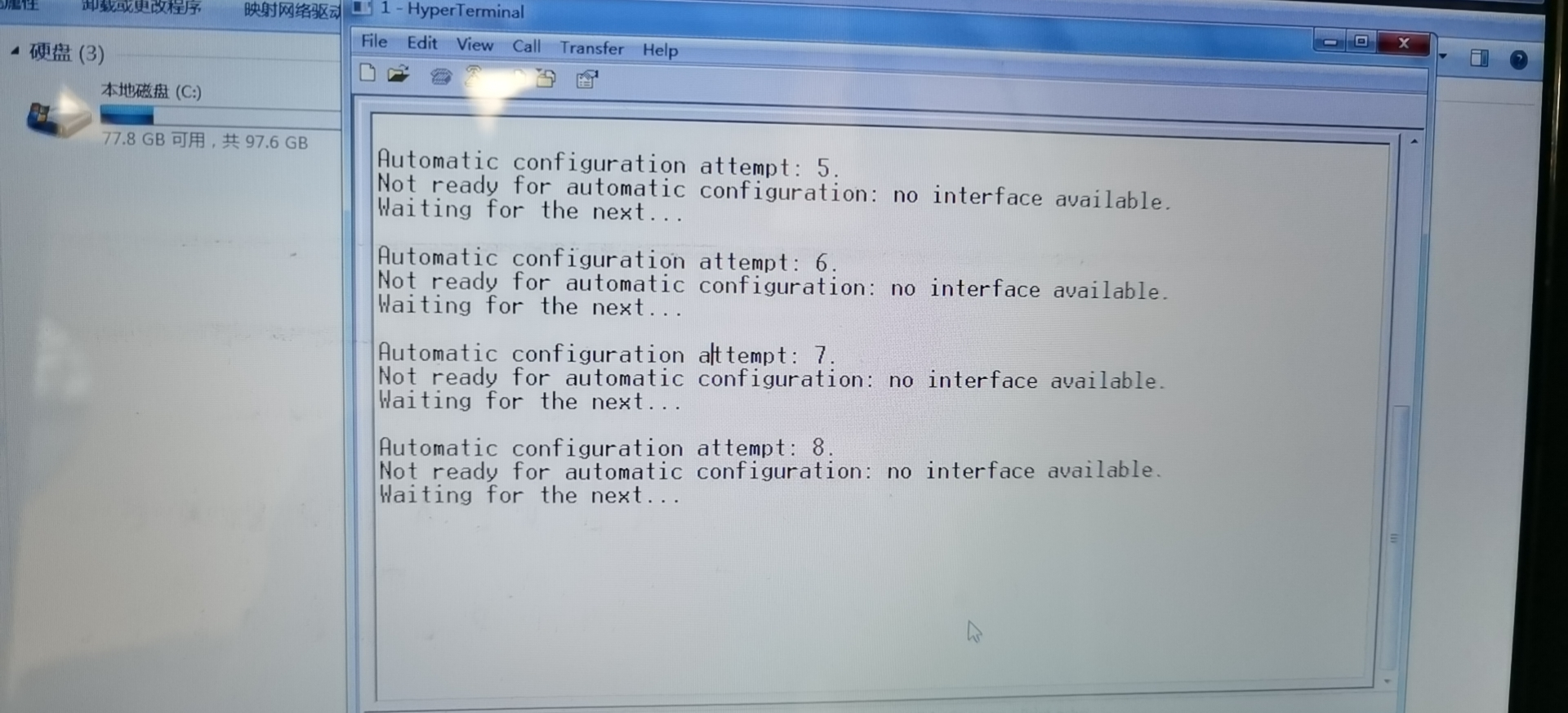 故障现象如下图,已经给 console线安装好驱动了,使用 超级终端,或者 xshell 登录,都是这样提示 automatic configurationattempt 。尝试过其他帖子的案例,狂按 Ctrl + C 或者 Ctrl +D,都不行,断电,再 狂按 Ctrl + C 或者 Ctrl +D 也是没反映。客户的这台电脑和这条配置线可以正常登录华为交换机。