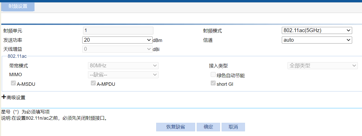 WA4320-ACN-C 802.11.ac 带宽默认是80M,要怎么修改