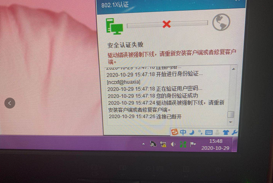 客户端安装新inode,认证成功后提示驱动错误被强制下线,卸载重启,重装都不好使。后台接入明细下线原因是user request。