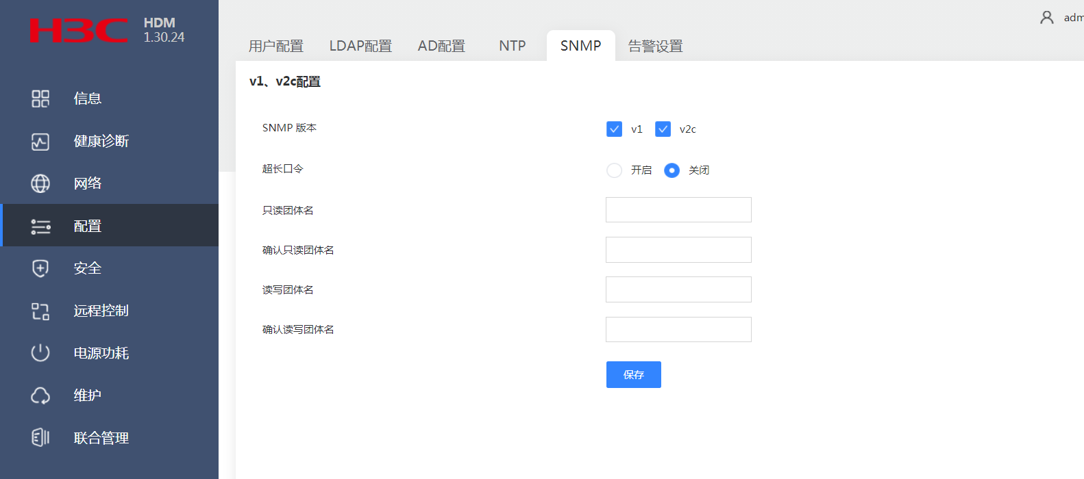 华三红牌服务器怎么配置SNMP团体名,在HDM口里的哪个地方配置