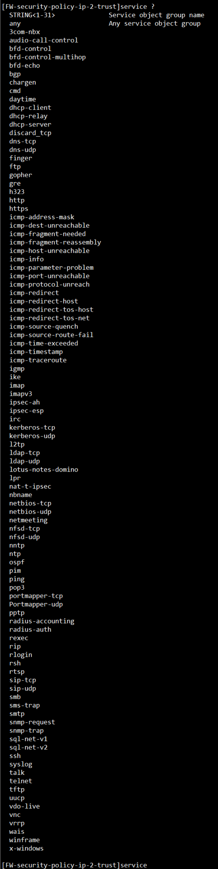 #object-group service test 0 service icmp 0 0#