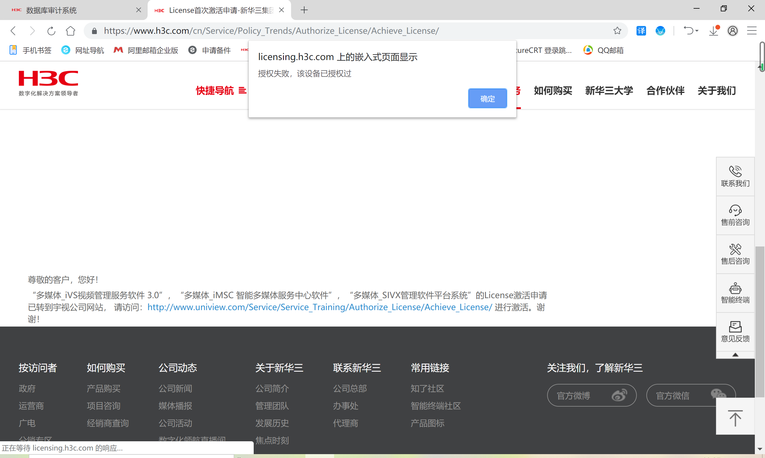 亲~检测到您登陆的账号未在http://hclhub.h3c.com进行注册