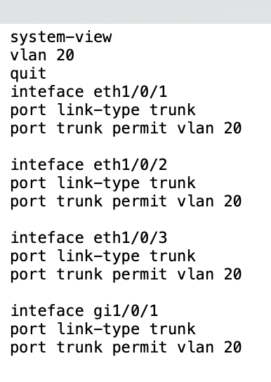 interface Ethernet1/0/3 //网口3也划分给vlan20