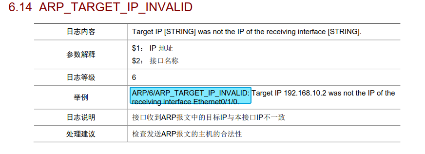 %Nov 4 14:00:50:200 2020 ARP/6/ARP_TARGET_IP_INVALID: Target IP 9.41.0.223 was not the IP of the receiving interface Vlan-interface603.