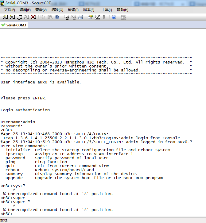 H3C S5500交换机,我可以进入web管理,无法在命令行界面做更多的操作。