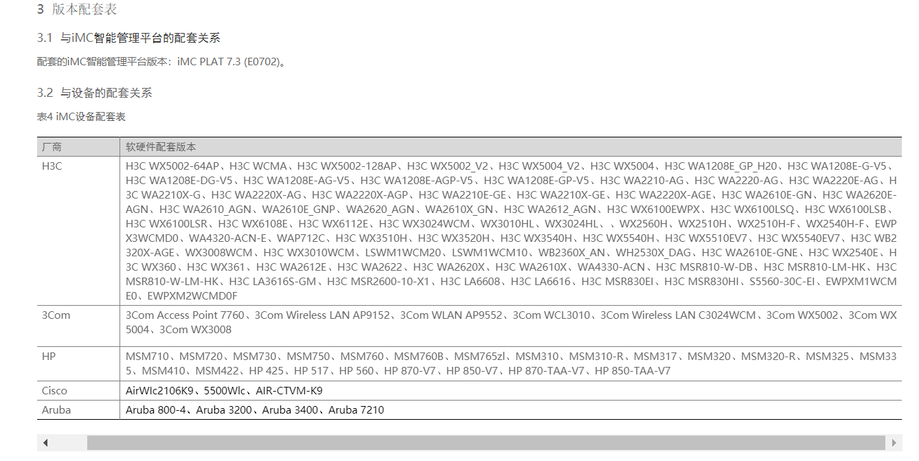 目前,WSM支持管理HP、H3C、Cisco和Aruba厂商的无线设备。有些模块/功能只支持其中某些厂商的无线设备,因此在使用各模块时,请注意该模块是否支持网络中的无线设备。