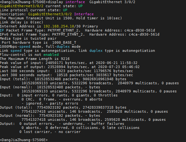 你图片里面的3/0/2是本段的出接口吗?可是出接口并没看到丢包