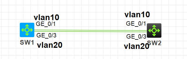 两个交换机的端口都是access端口,分别属于不同的vlan10,vlan20,假如SW1收到vlan10的广播包,发给SW2的vlan10的GE_0/1端口,