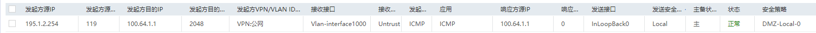 此时在s5110上输入ping -a 195.1.2.254 100.64.1.1在防火墙上查看会话为以下状态