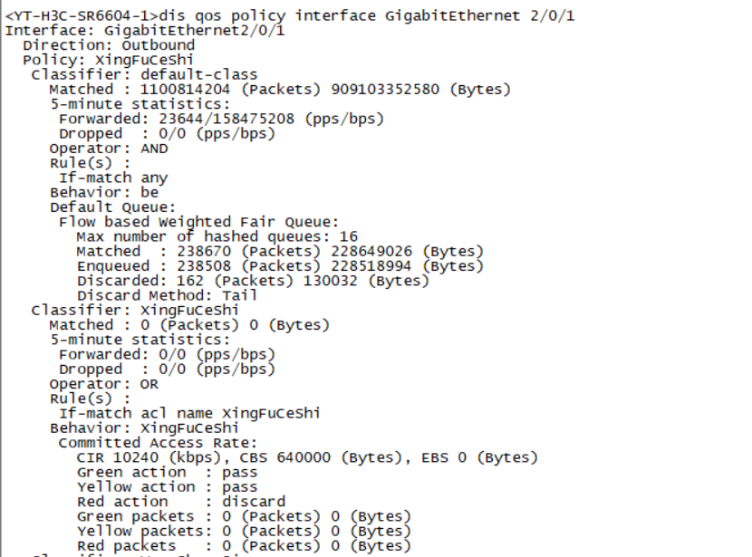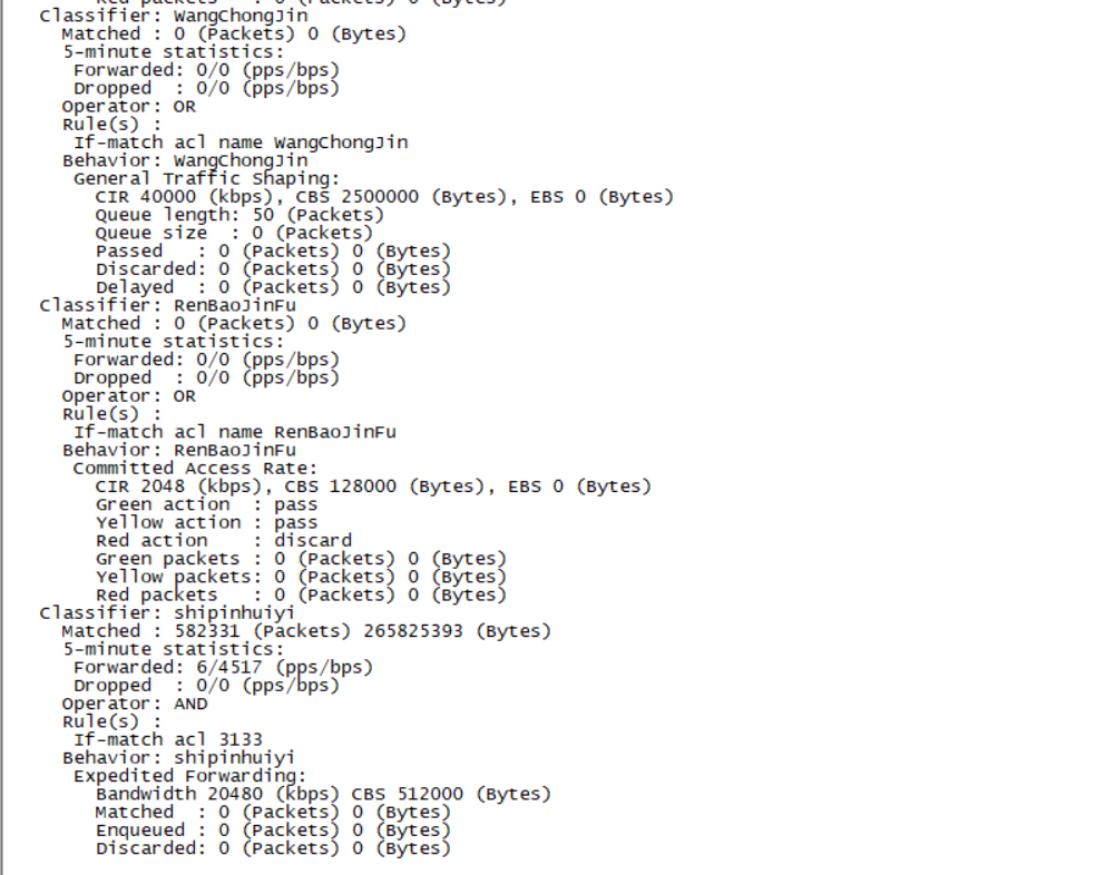 qos Classifier: shipinhuiyi 能匹配到流量,但是Behavior: shipinhuiyi没有执行动作的流量