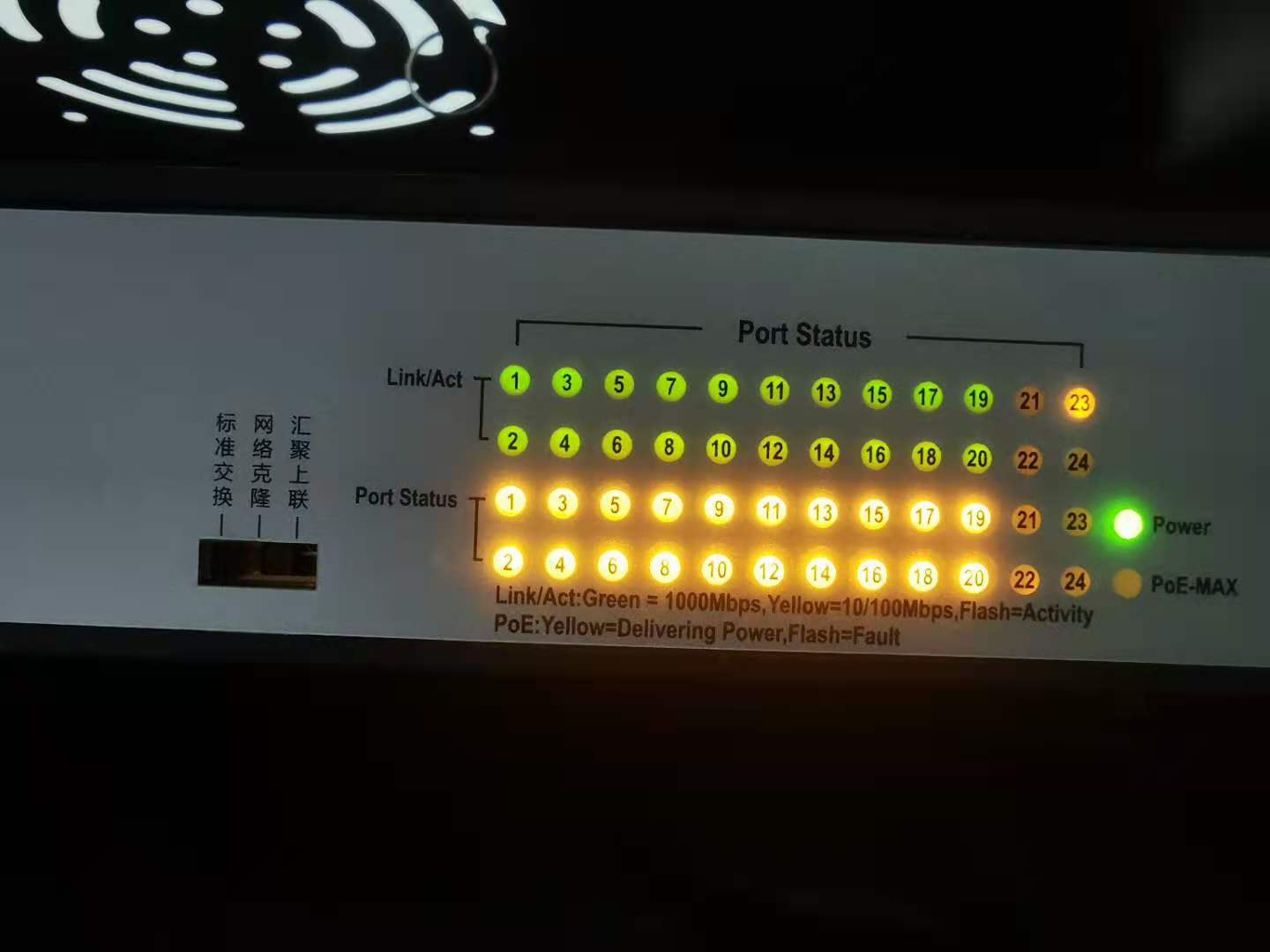 比如下图,23号是接到核心交换机的,就是千兆,其他的都是AP A51,都是百兆。