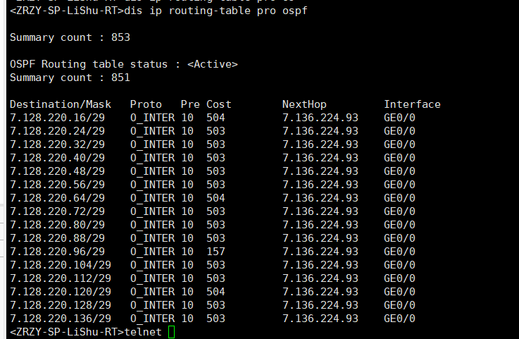 查看ospf路由表, proto 下显示的是O_INTER是什么意思,网络还是通的