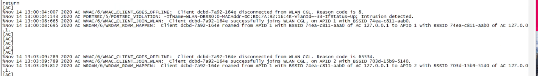 设备是V5 版本,下面终端老是掉线,然后重连,现有AP就两个,想请教一下这种是什么原因导致的,现在设备上提示的原因code 是 65534: