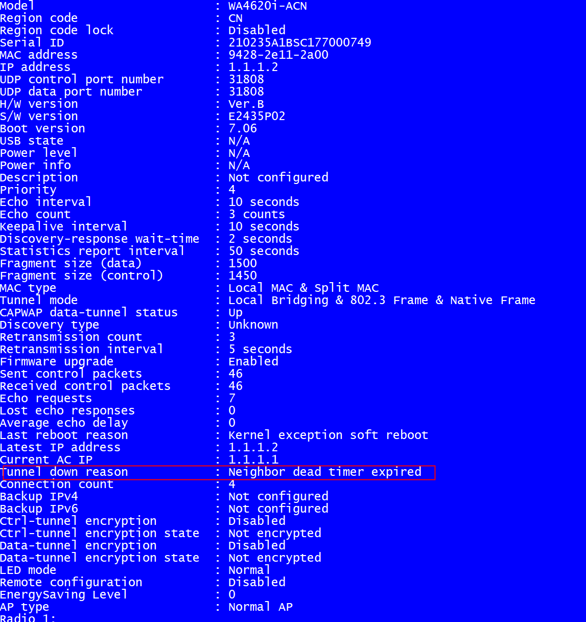 设备从现场拿回来,用另一个控制器测试直连测试,也是时不时的掉线,更换网线,升级到版本,问题还是会发生,AP改成胖模式是没有问题的,瘦模式搭配AC就出现掉线情况,接其他系列的AP没有问题!