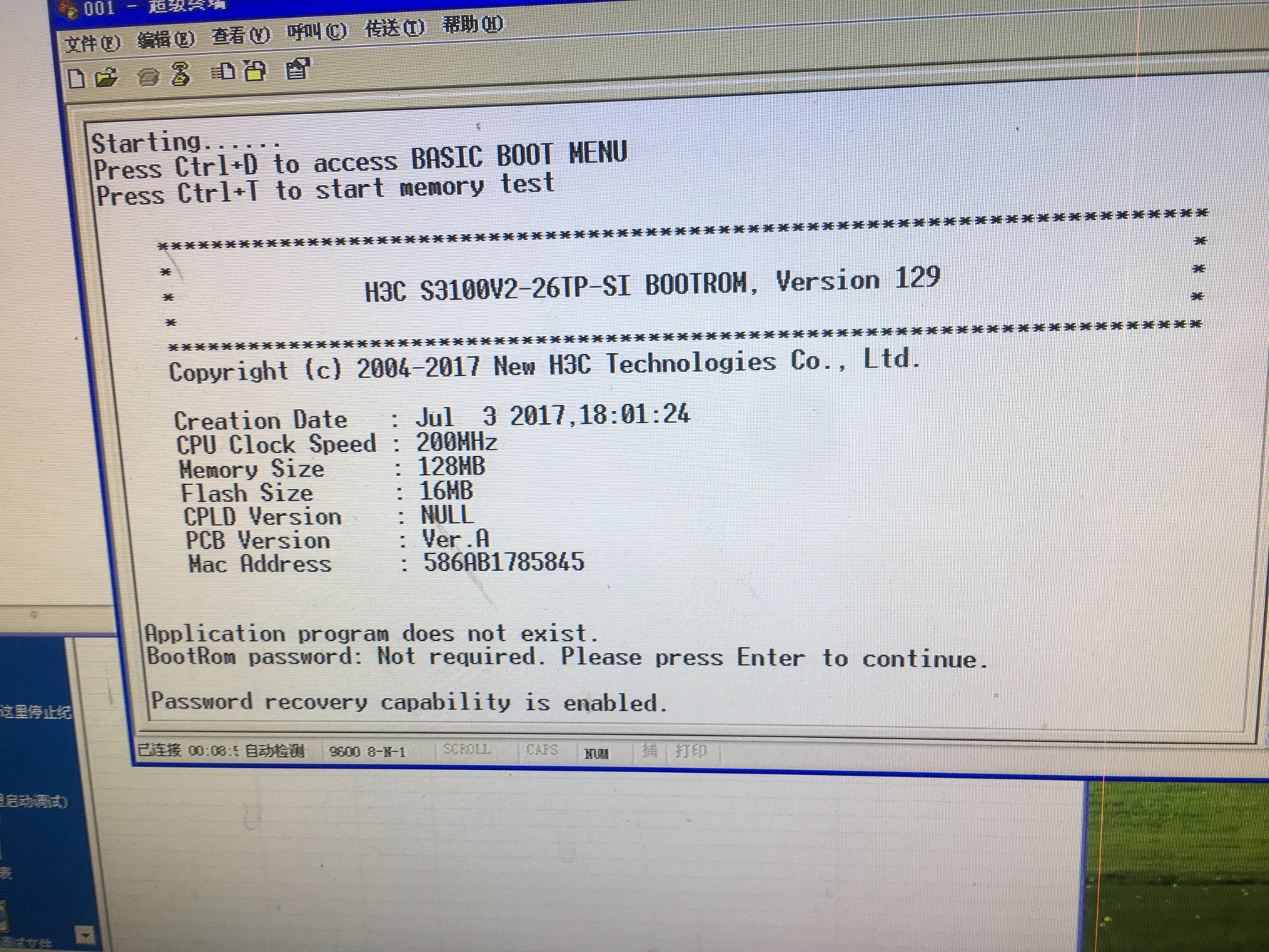 键入“0”,退回到BOOT菜单,再键入“0”,重启设备后,升级后的BootRom程序正式生效