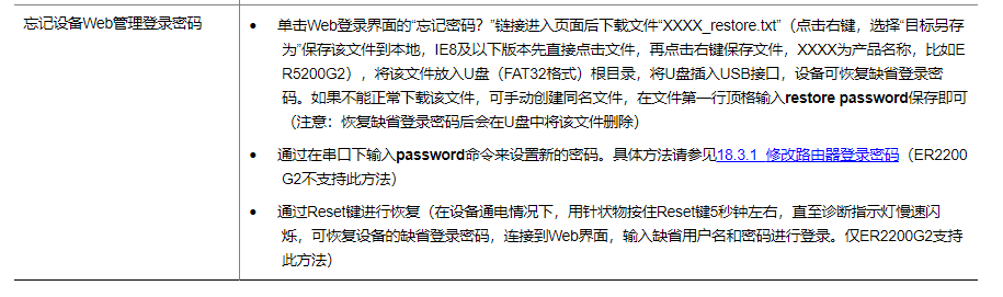 ER/ERG2路由器忘记密码有以下几种方式来解决:
