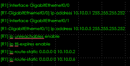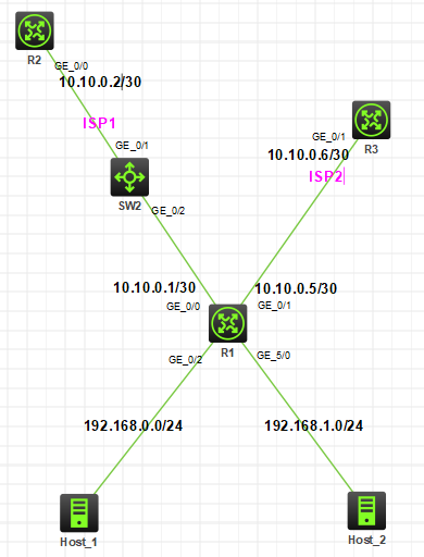 企业出口路由R1,R2为ISP1局端设备,R3为ISP2局端设备,R2和R1中间加了个二层设备。