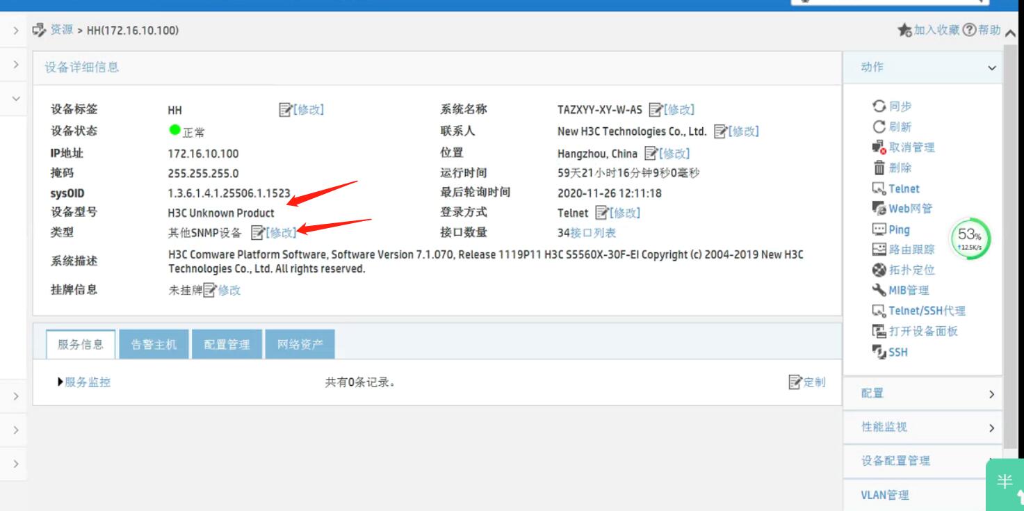 当iMC添加完一个网络设备之后,正常情况下会显示设备的具体型号,但有的时候会显示为““H3C Unknown Product”,如下图所示