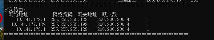 MSR路由器做L2TP的lns,10.141.178.1是MSR路由器的lan口 ip,L2TP拨号成功后笔记本ping不通10.141.178.1,win10客户端上已经添加路由route add -p 10.141.178.1 mask 255.255.255.128 200.200.200.4(msr路由的ppp地址),而且tracert 10.141.178.1匹配默认路由,不走明细路由,造成ping不通,route add -p 10.141.178.1 mask 255.255.255.128 200.200.200.4 if 64 (指定下一跳接口走l2tp虚接口)还是匹配默认路由。而且msr的L2TP地址200.200.200.4是可以ping通的,证明明细路由是可达的。但是总是匹配默认路由,知道哪里原因,大神指导一下