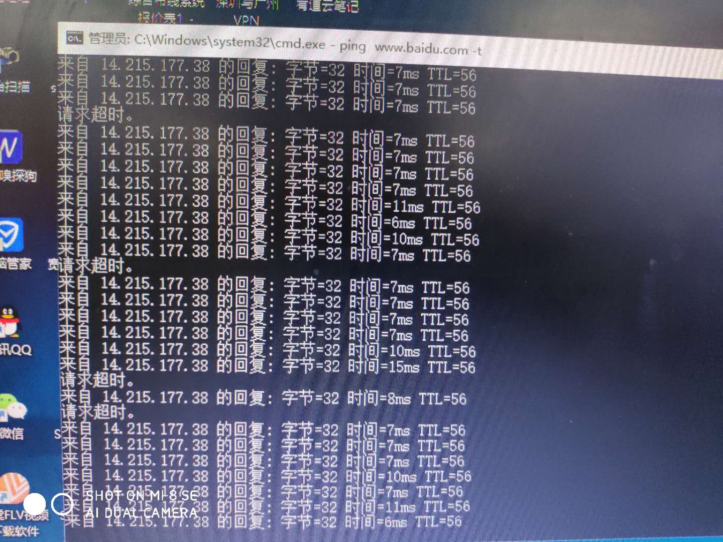 由于不能带-t 的参数从路由器ping 114.114.114.114 只看到四排信息,偶尔看到有一个网络超时的英文