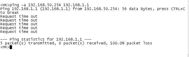 3、5130S交换机上可以ping通192.168.1.1,但带源192.168.50.254ping192.168.1.1的时候,也是不通
