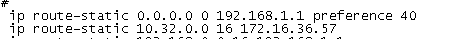 现在项目要实现不同业务走不通线路,左侧为通过专线返回广州,右侧为直连香港本地网关,现在我配置了两条静态路由,分别为当用户需要访问内网(10.32.0.0/16)的时候,就走左侧,普通上网走右侧,用户内部使用vlan50。