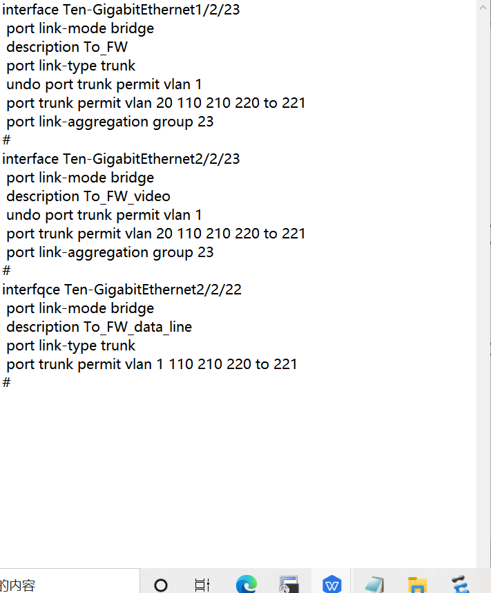 这是配置,两台核心的23口做捆绑,做视频的链路;22口不做,放通相关vlan,说是做透传,传输数据。就是请问一下这样会不会有环路啊?怎么解决啊?很多不懂,多多包涵解释一下。