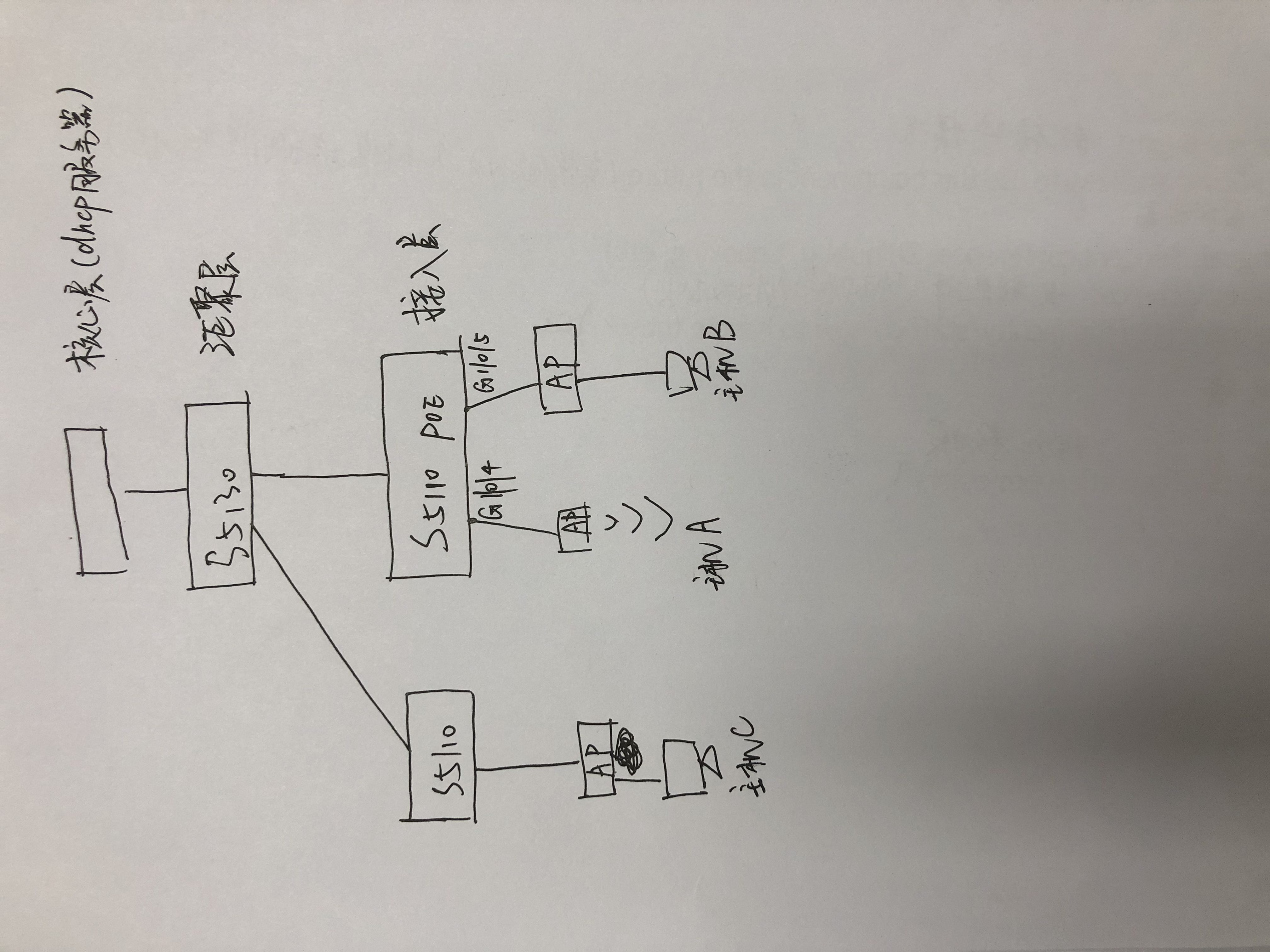 如图,接入层POE交换机S5110的G1/0/4和G1/0/5下连两个AP,主机A通过无线接入,主机B通过有线连接AP接入,主机A和B通过DHCP获得了同一子网的IP地址,主机A和主机B和主机C可以正常访问互联网,主机C和主机A,主机C和主机B都能通信,但是现在问题是A和B不能通信,为什么?