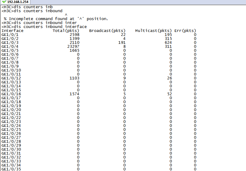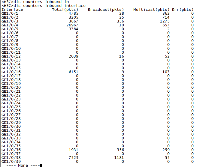 但是想问交换机的其它端口的广播包很多正不正常,以下的图分别是上面把36口模块线直接剪后直连交换后,清除所有端口信息后10分后和20分钟的截图:这是9点多钟我直接后的,36目前没有错包,但是其它口的广播包多。