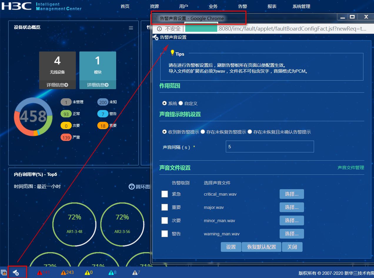 IMC网管如何设置声音报警,谢谢!!!版本是IMC PLAT 7.3 (e0703p08)